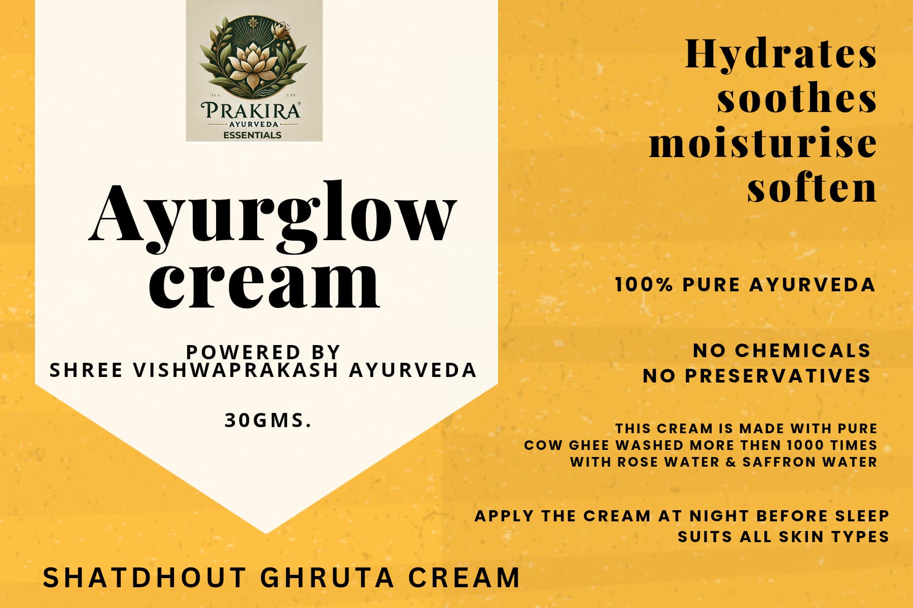 Ayurvedic skin cream made with Shatdhout Ghrita (ghee washed 1000 times). Deeply nourishes dry skin, brightens complexion, reduces pigmentation & heals wounds.